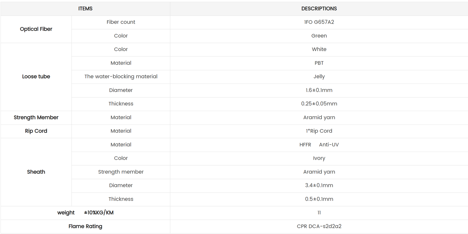 Sheath: Ivory-HFFR / Anti-UV