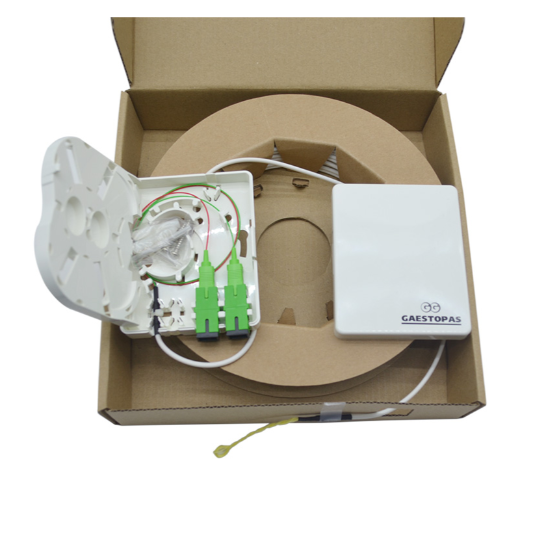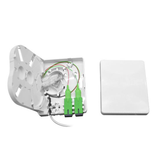 - The wall outlet termination box can be realized with outdoor optical cable fixing, leather line optical cable fixing, adapter fixing, and fast field connector fixing. The pull-off force is greater than 50N, fixed, and reliable.