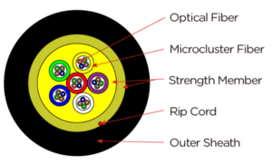 Micro-cluster indoor optical cables are used for vertically laying optical cables at indoor user access points and between floors. The dry design is easier to weld. The center of the micro-cluster optical cable uses FRP (rigid glass fiber) as the central tensile body. According to the number of users in the building, 2 cores/4 cores/6 cores/12 cores of different colors of optical fibers are placed in each cluster to form a micro-cluster (the so-called 2MB/4MB/6MB/12MB structure). Finally, Aramid Yarn (aromatic polyamide fiber) is added to enhance the tensile strength of the optical cable. The outer sheath uses low-smoke, halogen-free, environmentally friendly, and fire-safe materials.