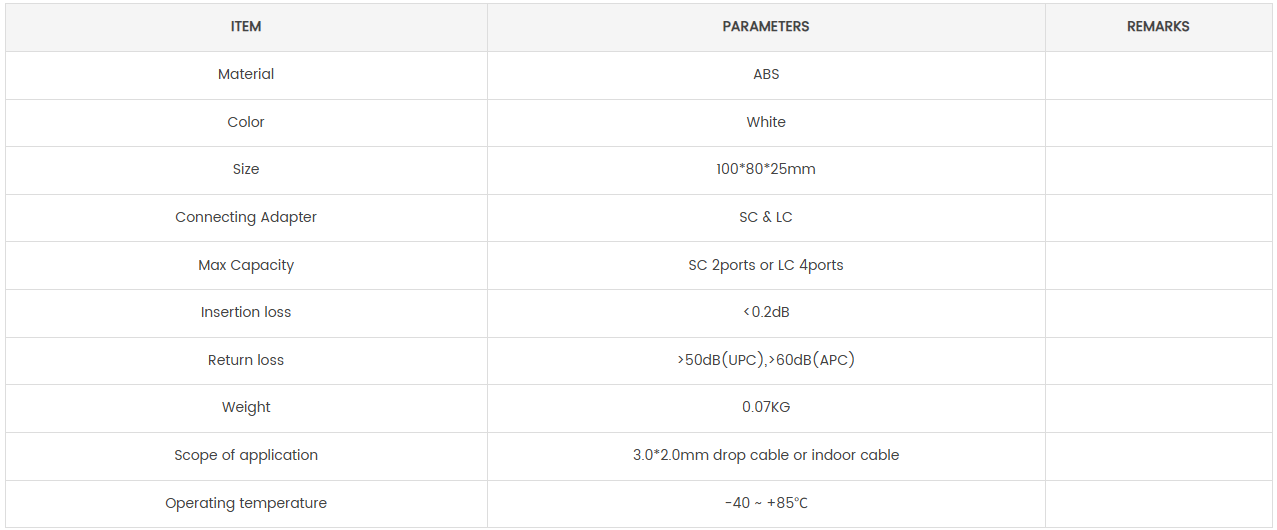 This type of fiber rosette box can hold up to 2 subscribers. It is used as a termination point for the drop cable to connect with the patch cable in the FTTH indoor application. It integrates fiber splicing, termination, storage, and cable connection in one solid protection box.
