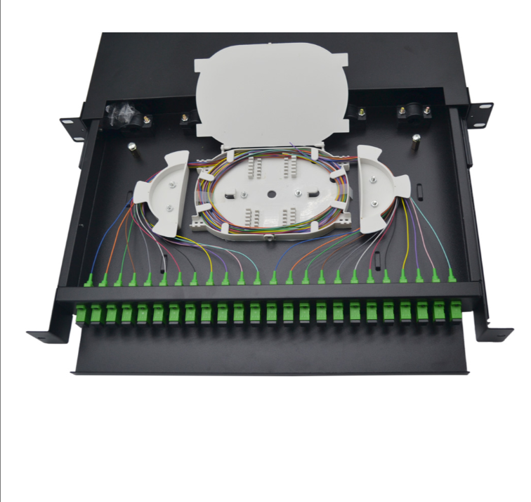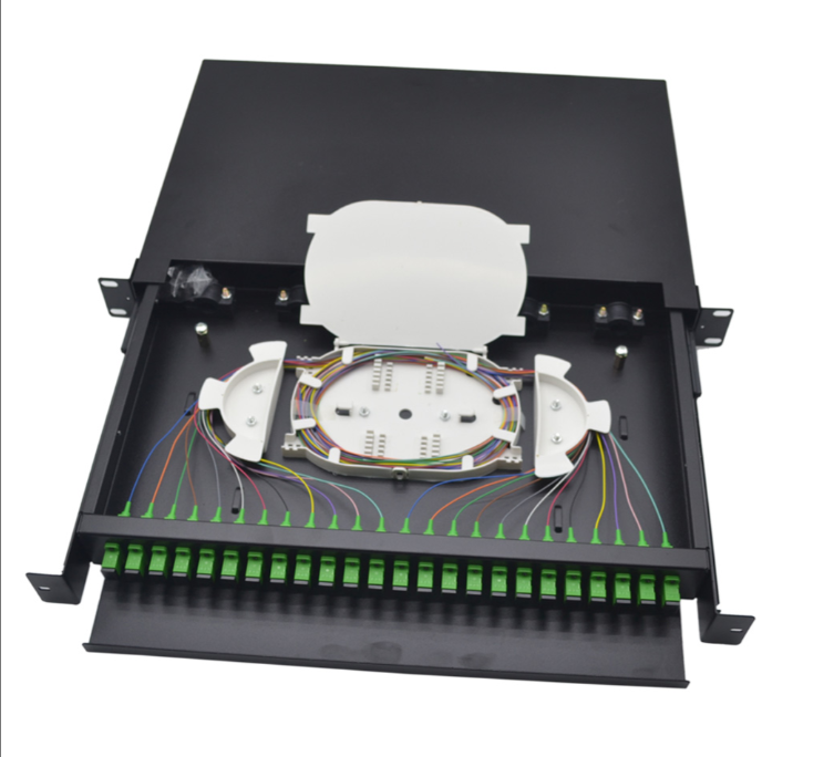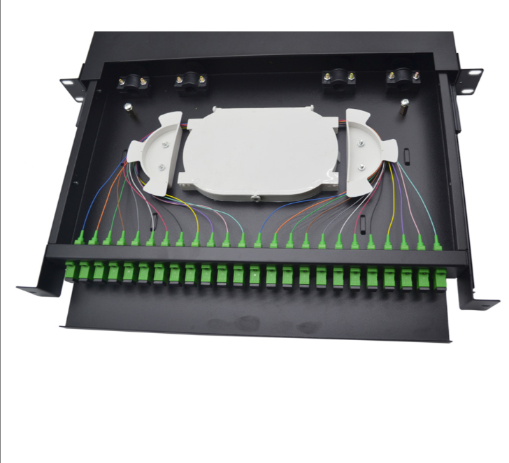 The case is made of cold rolled steel, Electrostatic Spraying, and provides 12 single or double adapters, available for SC, LC, FC, ST